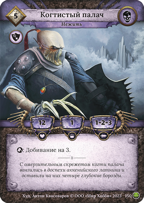 | Худ. текст | С омерзительным скрежетом когти палача вонзились в доспехи аккенийского латника и оставили на них четыре глубокие борозды. |